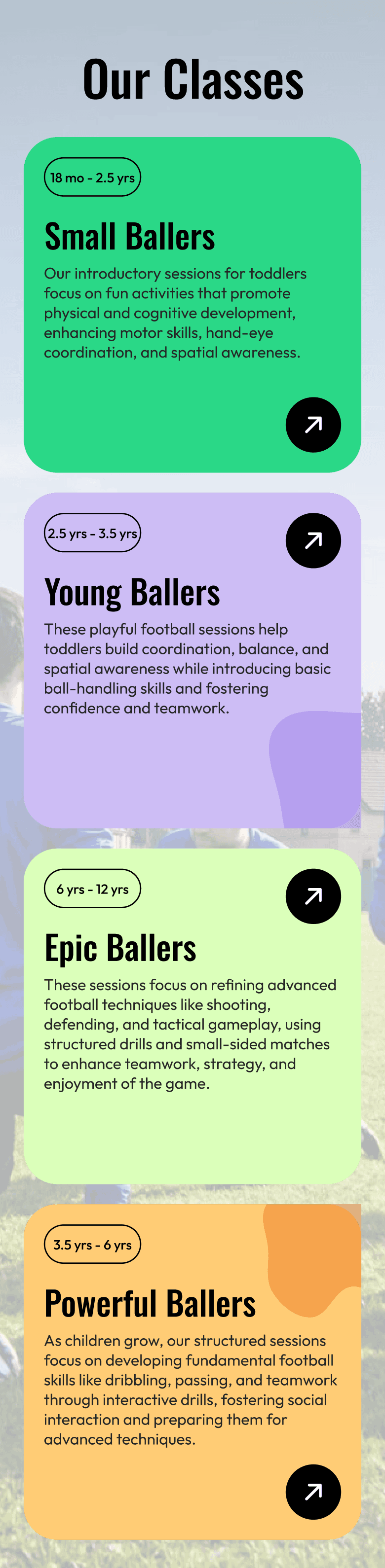 Whether your child is stepping onto the pitch for the first time or is ready to take their game to the next level, we provide the perfect environment. At Just Ballers, our coaching is adapted to meet every player's individual needs, ensuring they build confidence and skill at a pace that’s right for them.